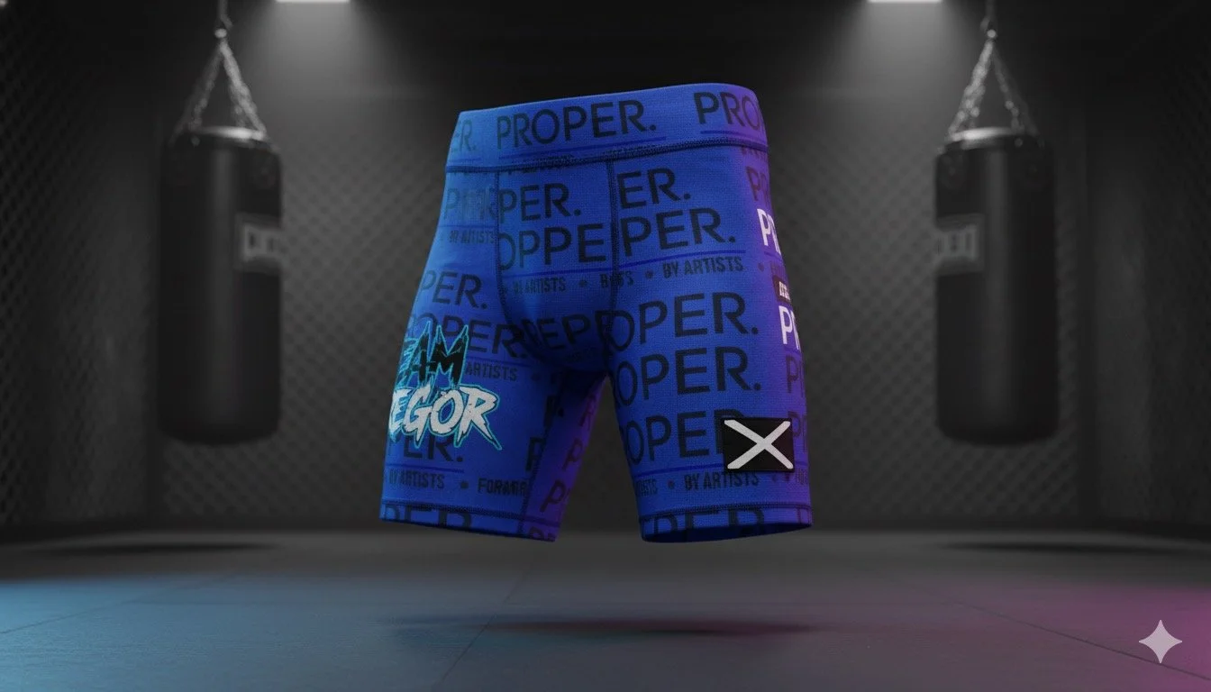 The Proper x Gregor Training Shorts #2 are designed in collaboration with our sponsored pro fighter, Gregor — representing discipline, loyalty, and the proud Scottish fighting spirit. Featuring an all-over Proper print fade from deep blue to purple, these compression-fit shorts deliver maximum flexibility and breathability for every training session. Branded with the Team Gregor graphic and Scottish flag detail, they stand as a symbol of commitment — from the gym to the cage.